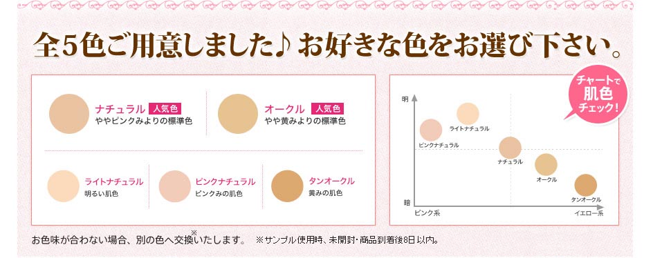 [ひらめき]特典1:全部試せるファンデーション5色サンプル